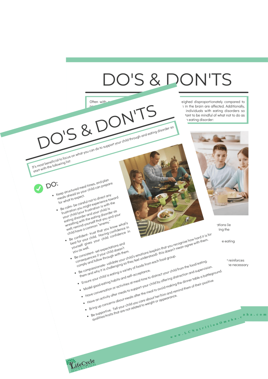 The Dos & Don’ts Checklist for Parents and Caregivers of Children with Eating Disorders is a must-have guide for every parent supporting a child with an eating disorder. This checklist gives clear tips to help parents help their child.